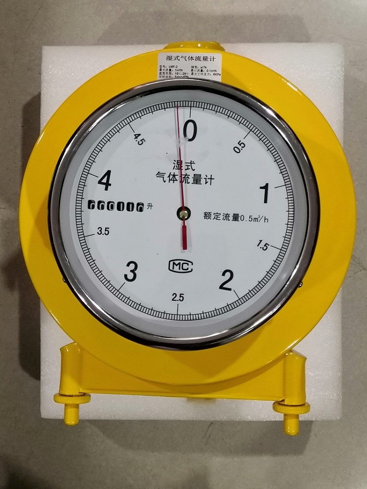 LMF型为防腐型,采用不锈钢材料,可以在腐蚀气体范围内使用。 是实验室常用的仪表之一。在测量气体体积总量时,其准确度较高,特别是小流量时,它的误差小。可直接用于测量气体流量,也可用来作标准仪器检定其它流量计。 湿式气体流量计每个气室的有效体积是由预先注入流量计的水面控制的,所以在使用时必须检查水面是否达到预定的位置,安装时,仪表必须保持水平。