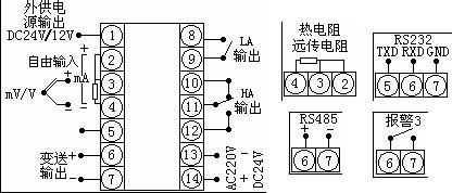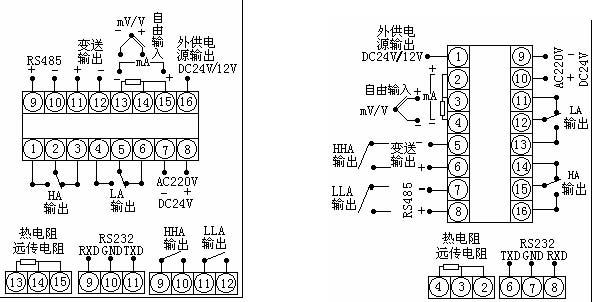 注:⑴输入信号为热电偶、电压信号,接线方式相同